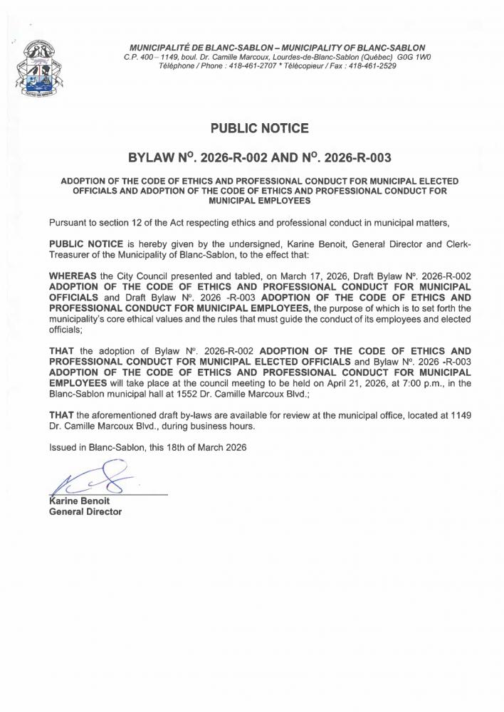 Public Notice of Drafts for Code of Ethics of Employees and Elected Officials