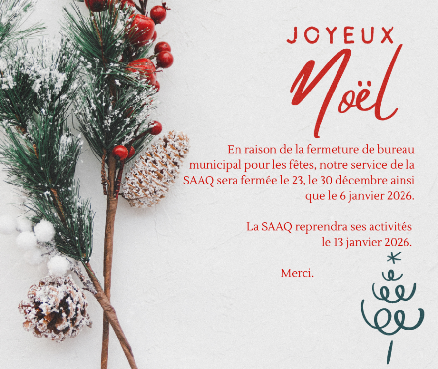 DATES DE FERMETURE DE LA SAAQ POUR LES FÊTES